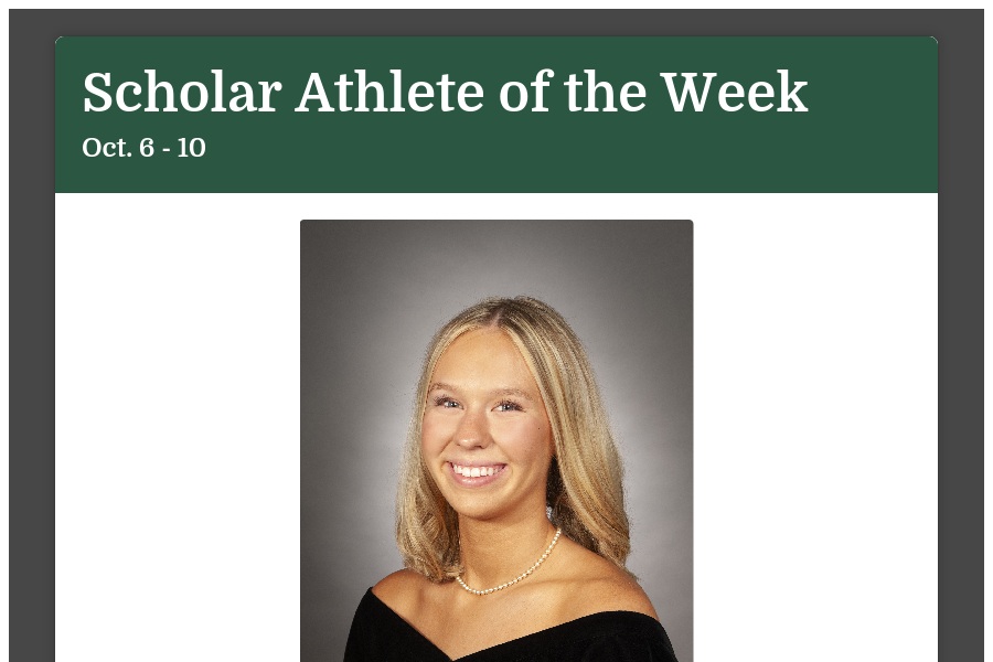 Scholar Athlete of the Week Oct. 6 - 10 Samantha Settle Sport(s): Volleyball (10th-12th) Academic Highlights: Samantha has a 3.7 GPA. She is a member of the C. . .